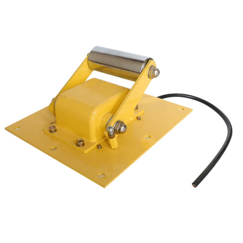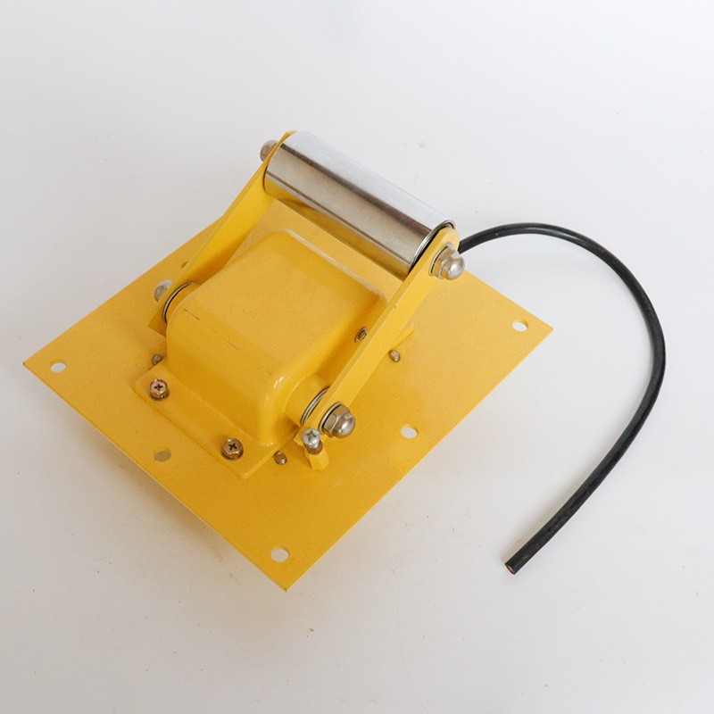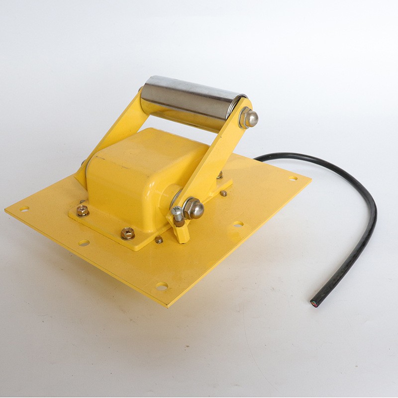 胶带提升机防跑偏开关,分别安装在胶带提升机上下左右壁板侧,检测胶带上下左右跑偏。安装时滚轮离胶带有20-70mm距离可调整(由用户自定,一般以不摩擦到滚轮为准)。