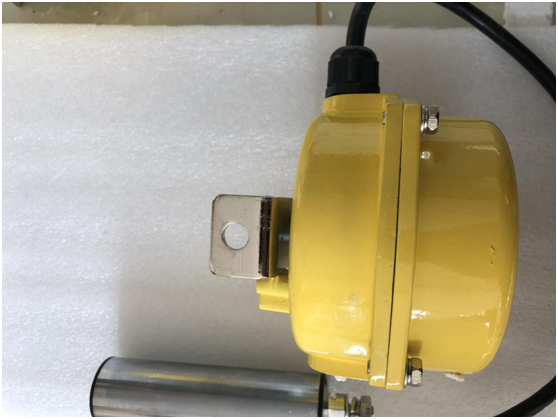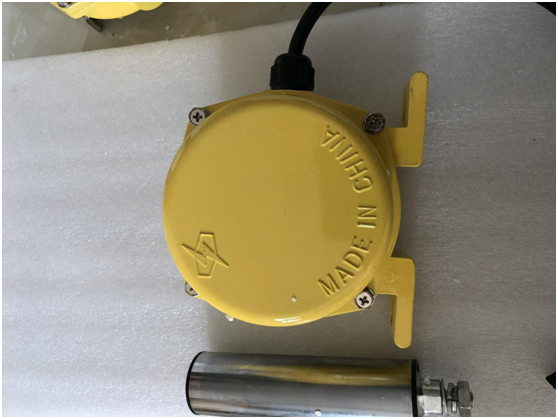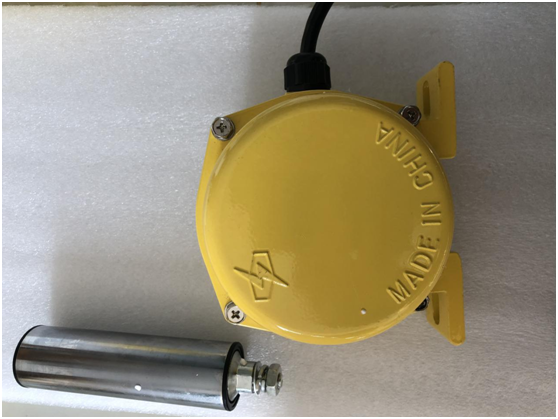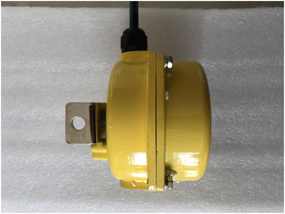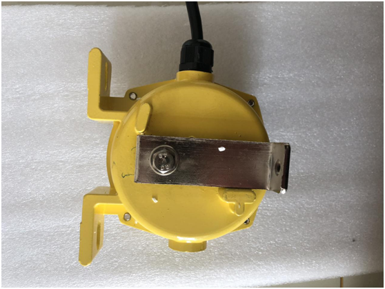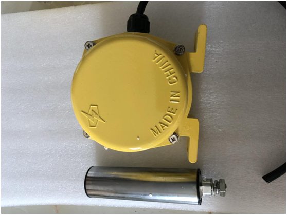 当运行中的胶带发生跑偏现象时,胶带边缘带动立棍旋转并挤压使之倾斜,若立棍倾斜角度大于一级动作角度时,开关发出一组开关信号,如立棍继续倾斜大于二级动作角度时则输出另一组开关信号。两组开关信号可分别用于告警或停机,胶带机复位正常运行后,立棍自动复位。